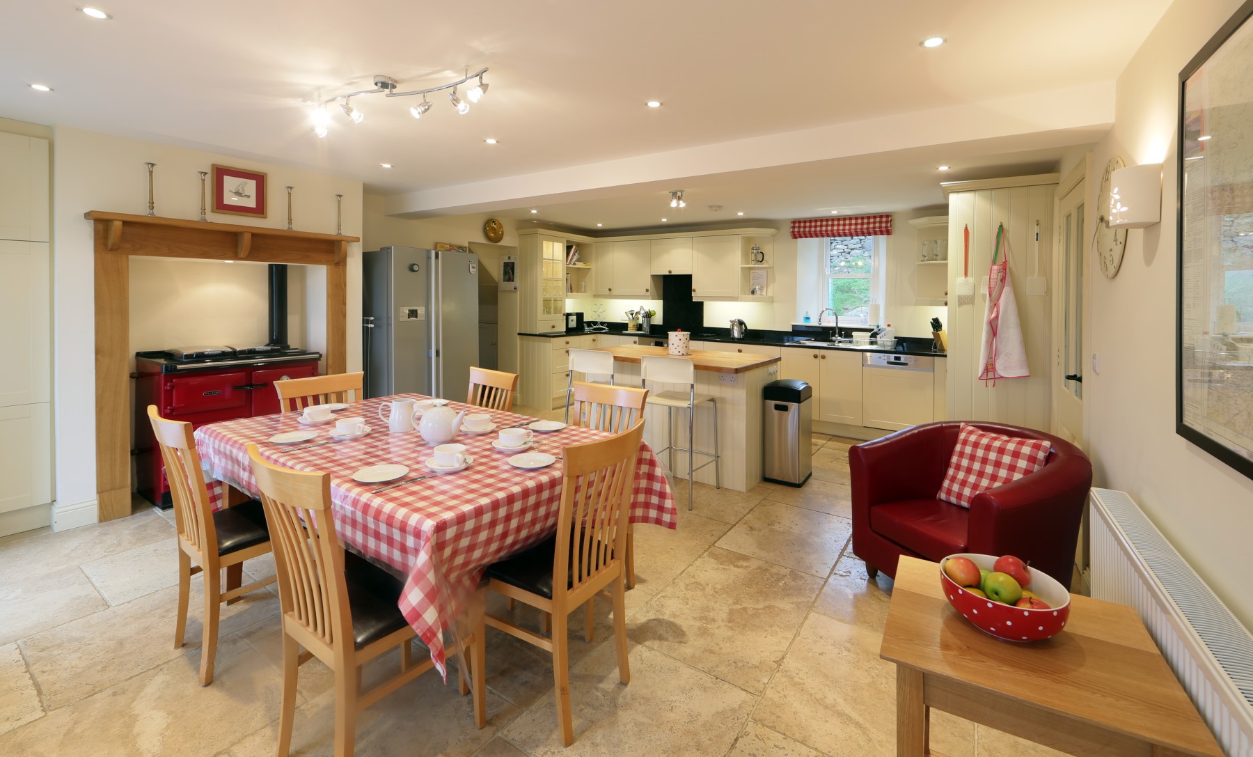 All of the bedrooms have pocket sprung matresses with Egyptian cotton bed linen, the floors are carpetted in all of the bedrooms. There is a master bedroom, a double bedroom (option to setup as a twin), a twin room and a single room. The kitchen diner is designed around cooking and entertaining, with a ceramic hob, a Rayburn and a fan oven. There is a large American fridge freezer, microwave, dishwasher, hifi and cooking equipment.