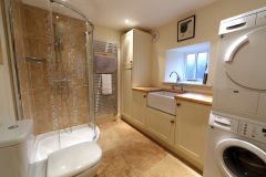 Laykin sleeps 7 in its 4 bedrooms, and there are 3 bathrooms. It has a large kitchen diner, a sitting room with a woodburning stove as well as a large coat and boot room. All of the furniture is new and modern lending it a cosy and warm feel.